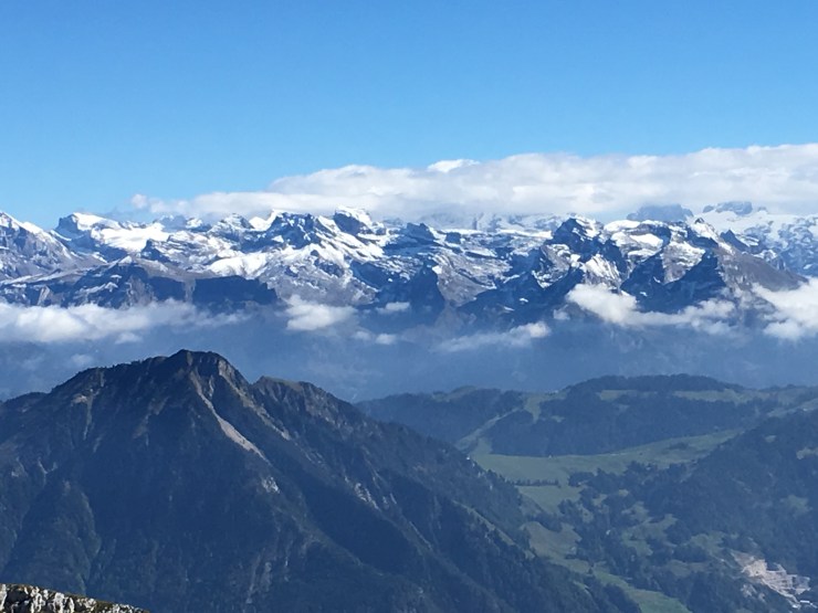 A lush, green peak, in contrast to Mt. Pilatus. Hiking down from the peak on a bright, sunny day is spectacular.