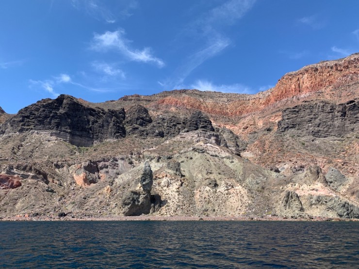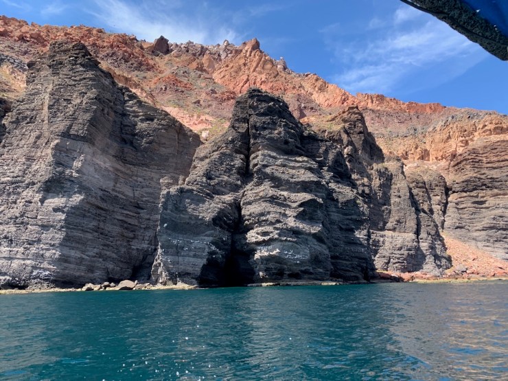 The cliffs along the eastern side of the island were amazing…simply amazing. We saw a geologist’s paradise, as our boat turned into caves and arches. It would have been a sin if we had come all this way and not seen that island.