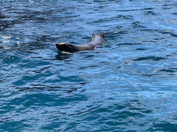 That afternoon the water calmed and we saw masses of turtles swimming all around us. Sometimes just heads popping up, but many full body swimming on top of the water. Cliffs on one side, turtles all around…clear turquoise water, then shades of dark blue. Dolphins are here, but the bay is so huge, that they are not frequently seen and tour groups are not allowed to swim with them