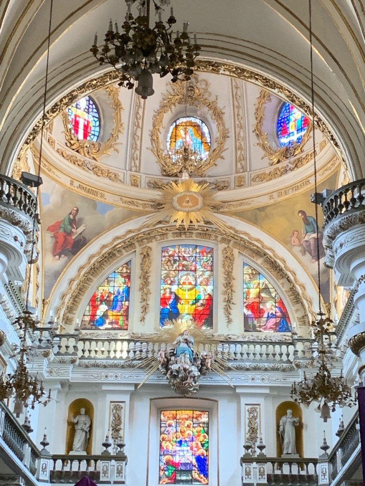 Cathedral de Guadalajara, built 1558-1616 in Baroque and Gothic styles, and much altered since then. Inside are many chapels and reliquaries and a curious 300 year old “Mummy Girl”, St. Inocencia. She dates from the 1700’s, stories vary about her martyrdom. Just didn’t seem right to take picture of her, although she was surrounded by visitors.