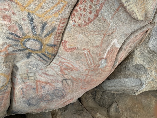 Since we were taking our time on the long way out, we stopped about half way at Cavatina to climb the boulders, find cave paintings and hike around the cacti.