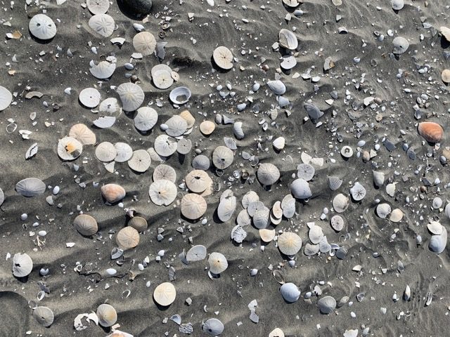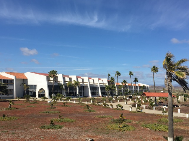 After the long desert crossing from east to west we stopped at the Hotel Mision Santa Maria on the Pacific Ocean near San Quintin. This is an agricultural and fishing community, and dinner was outstanding. Walking on the windy, windy beach and dunes we found sand dollars all over the place.