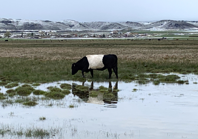 Snow at Capitol Reef prompted us to drive south over the mountain to Boulder. Enroute we made a few acquaintances. The “oreo” cow is a Belted Galloway, and the horse seemed offended by my love for donkeys.