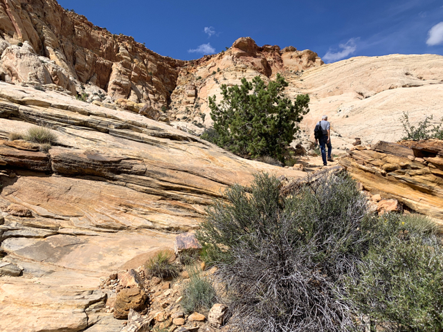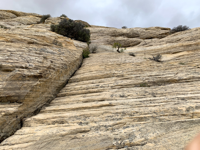 Seeing the sun in Boulder we made a “let’s go” decision and drove onto Burr Trail – the only road that crosses the top of the Waterpocket Fold – which means canyons and more canyons. But first, a little climbing on the white steps of Grand Staircase – Escalante.
