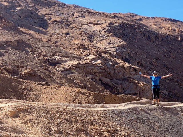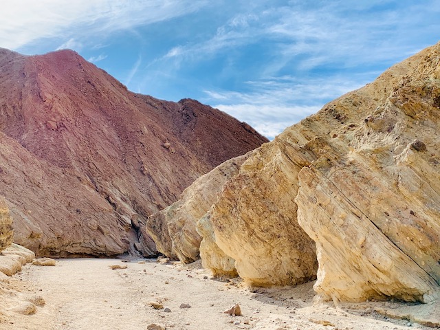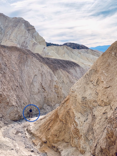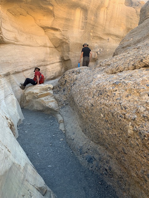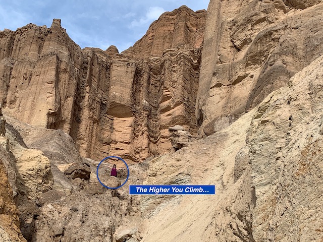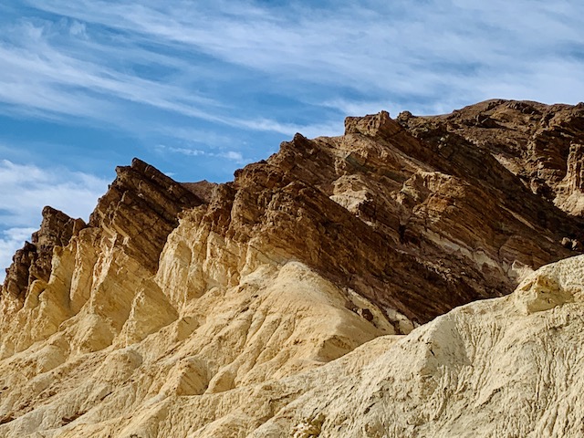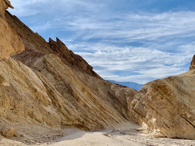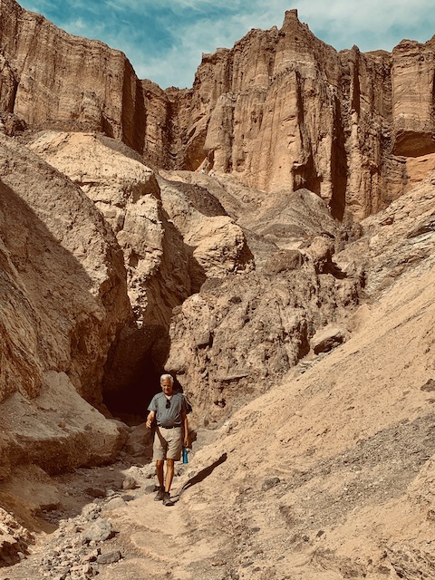 I love the crunching of boots on trails, scrambling over rocks and looking upward at the slants and folds of a geographic upheaval from eons ago. (Natural Canyon, Mosaic Canyon and Golden Canyon)