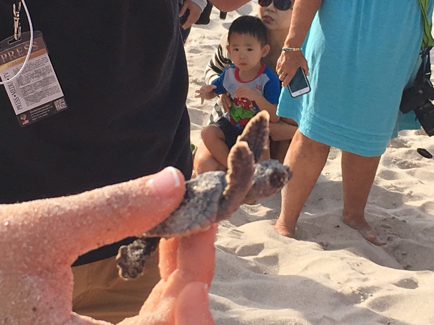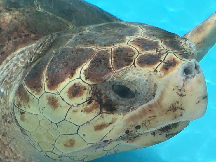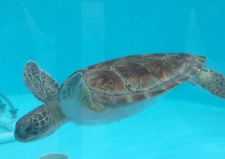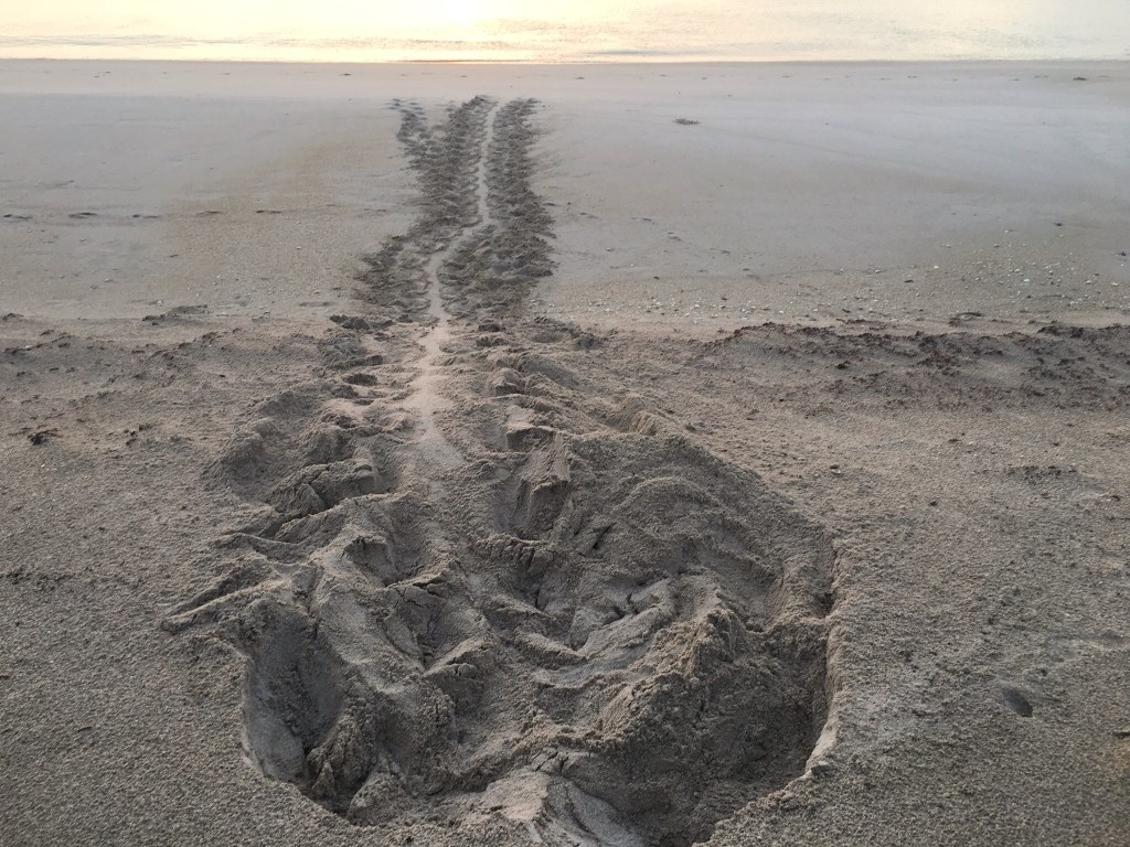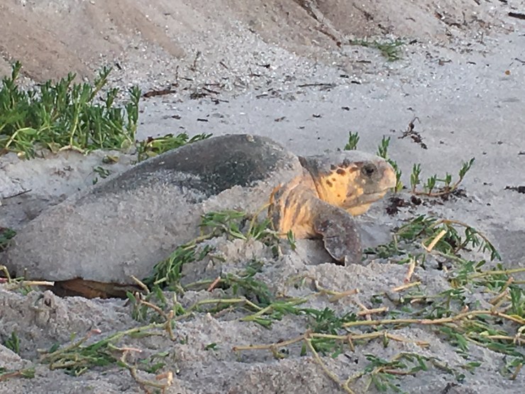 The turtles dig their nests and lay eggs on the beach March through October.