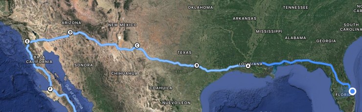 • On February 14, 2019, we drove from Vero Beach, Florida to La Paz, Baja Sur.