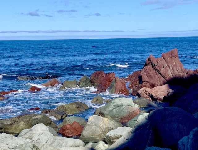 Continuing south from Lyall Bay, Red Rocks Marine Reserve is an 8km walk on a gravelly, sandy rocky coastline (a tad hard on the feet) through Devil’s Gate. No elevation – unless you want to climb the hills beside you that ascend to the sky.