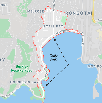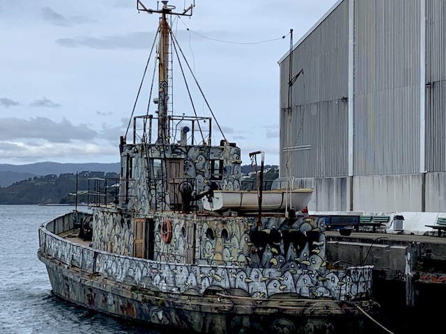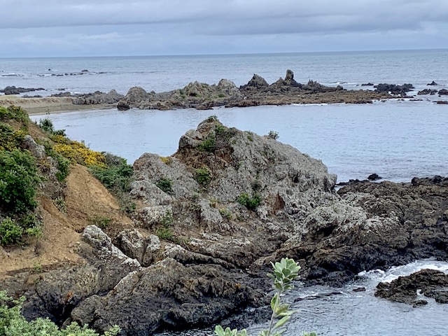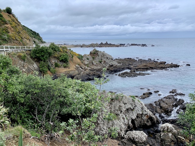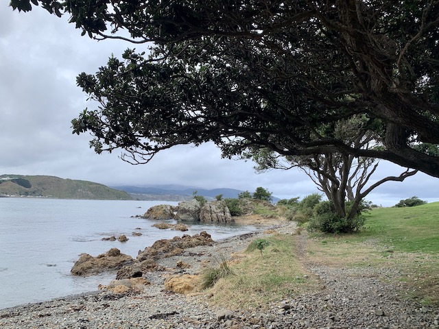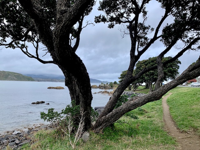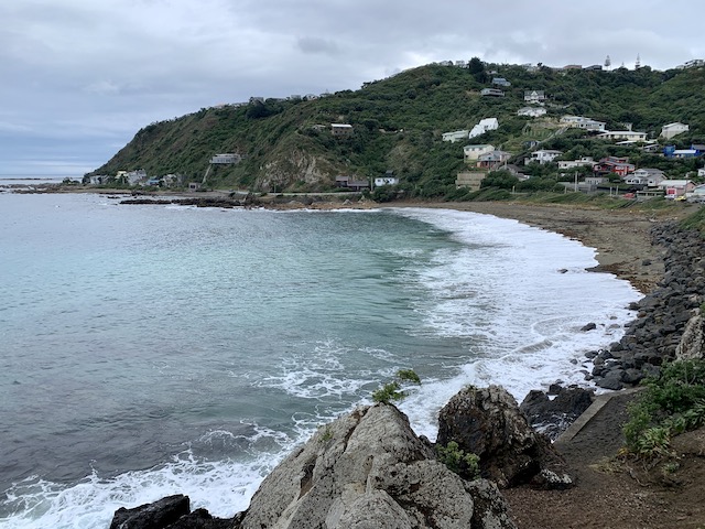 Welly’s most popular surfing beach. Each evening, bundled up in our puffy coats, we followed barefooted footprints of surfers in wetsuits toting boards to and from the beach. During the day, a stupendous coastal walk between Lyall and Houghton Bays.
