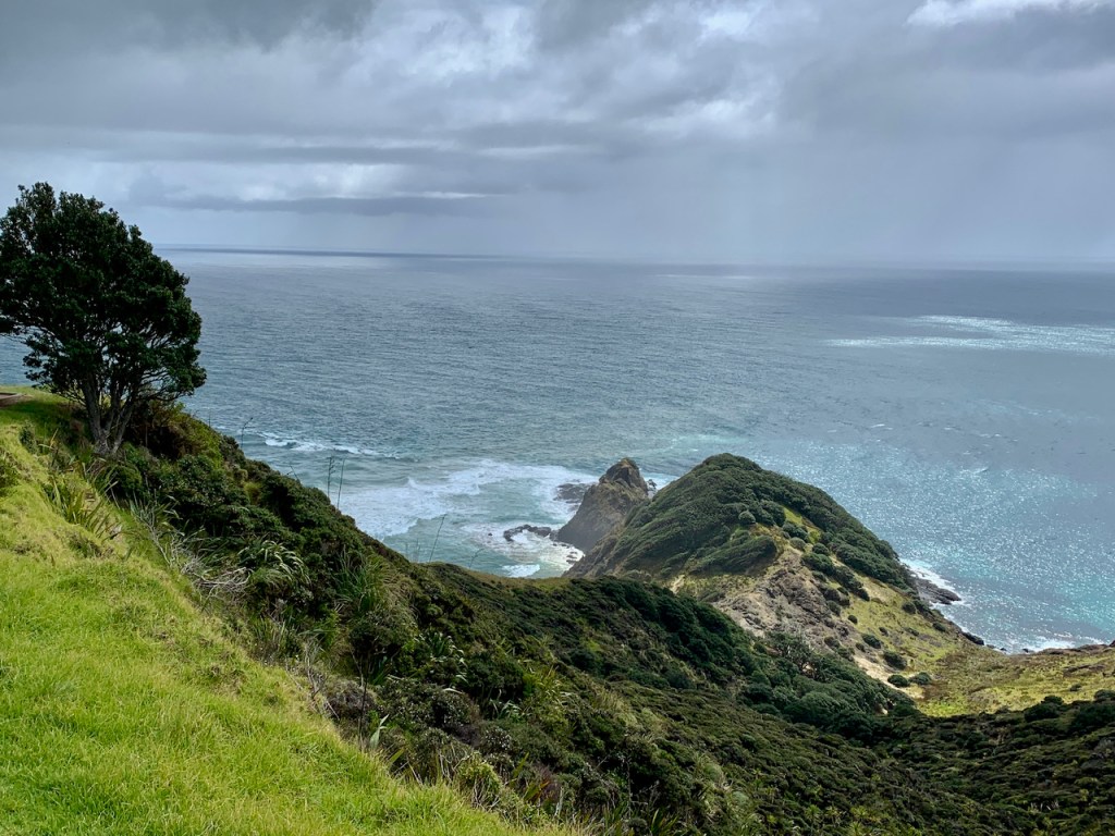 Far below, at tip of the peninsula, the Tasman Sea and Pacific Ocean swirl and slam together.
