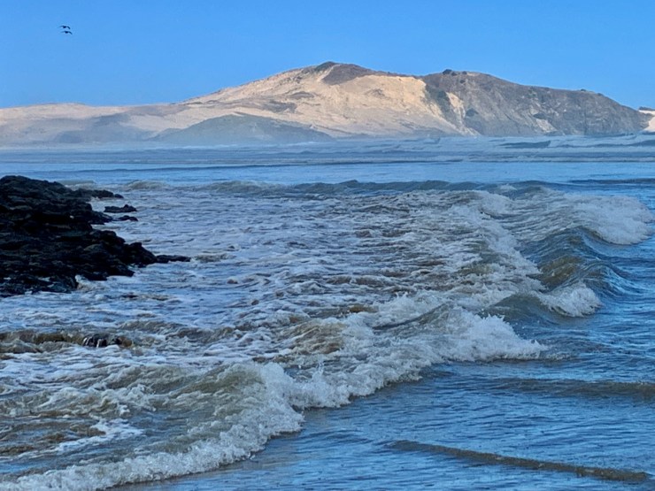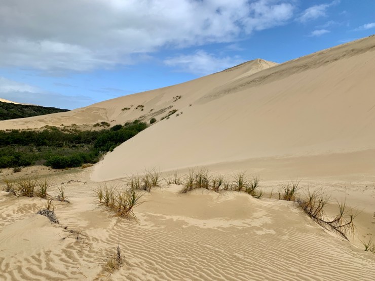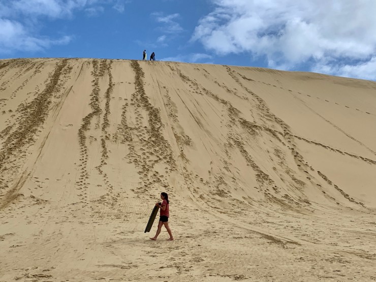 Desolate, gorgeous 400ft high dunes span 6 miles of coast and hill country. We watched people laboriously pull boogie boards up the dunes, teeter over the top and zoom down. (The down part looked fun. The climb? Well, it started to rain….)