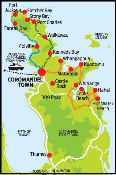 On the west side past Colville the road narrows and becomes gravel under GIANT Pōhutukawa trees. For 90 minutes the coastal road winds deep into spectacular scenery with the ocean below, ending at Fletcher Bay.