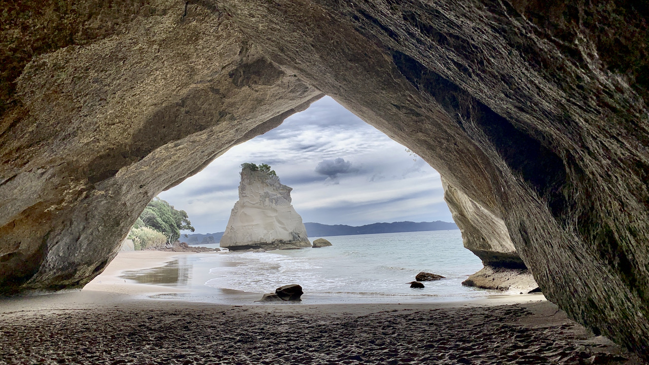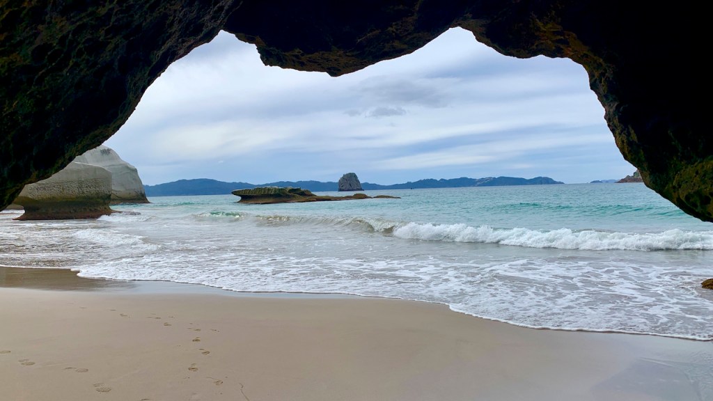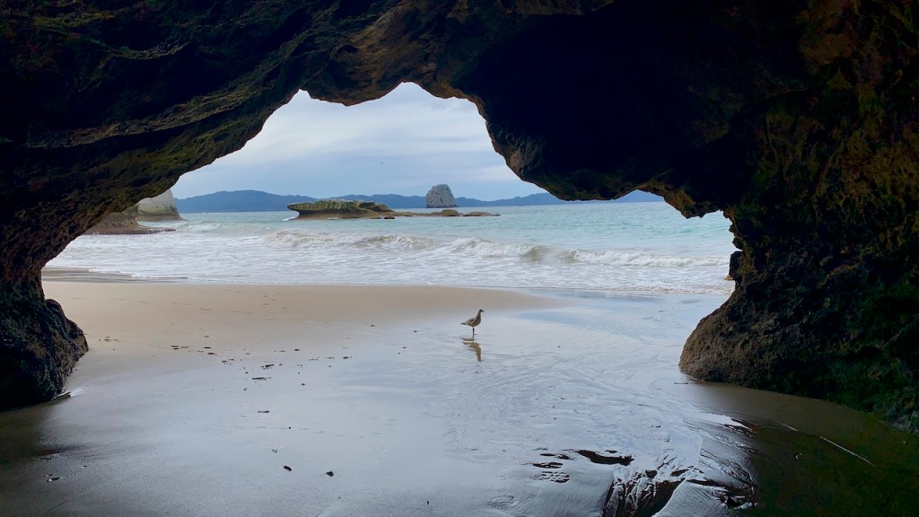 The most photographed shot in NZ is through Cathedral Cove Arch. Accessible only by foot (or boat) the track from Hahei Beach is a seaside splendor.