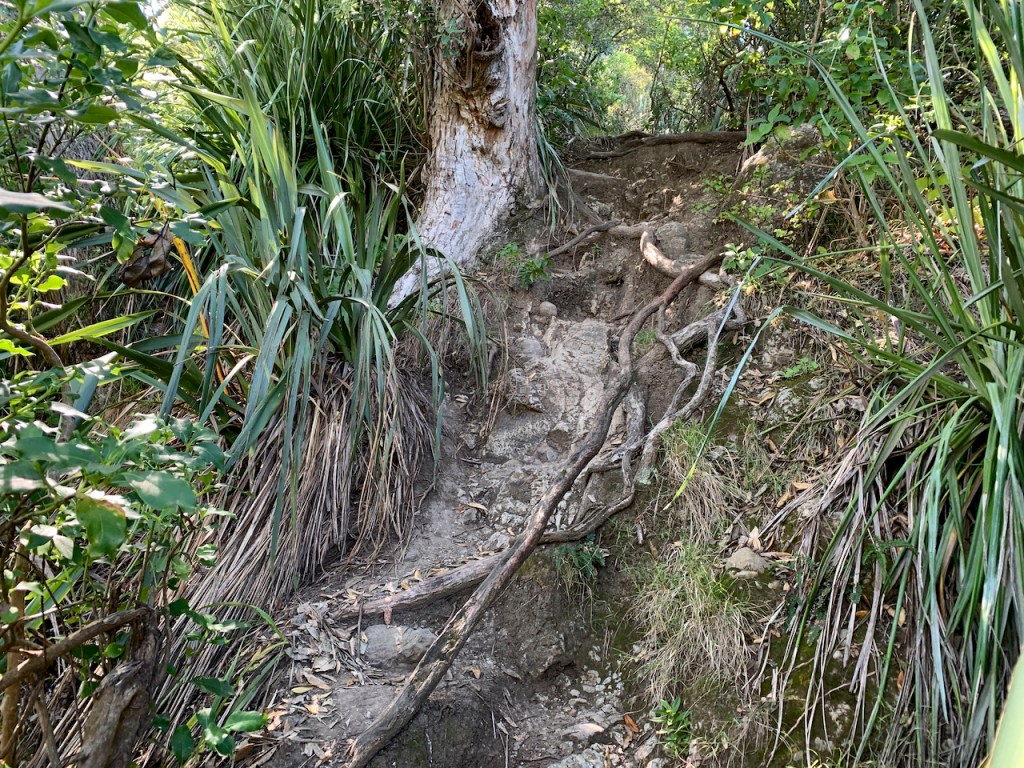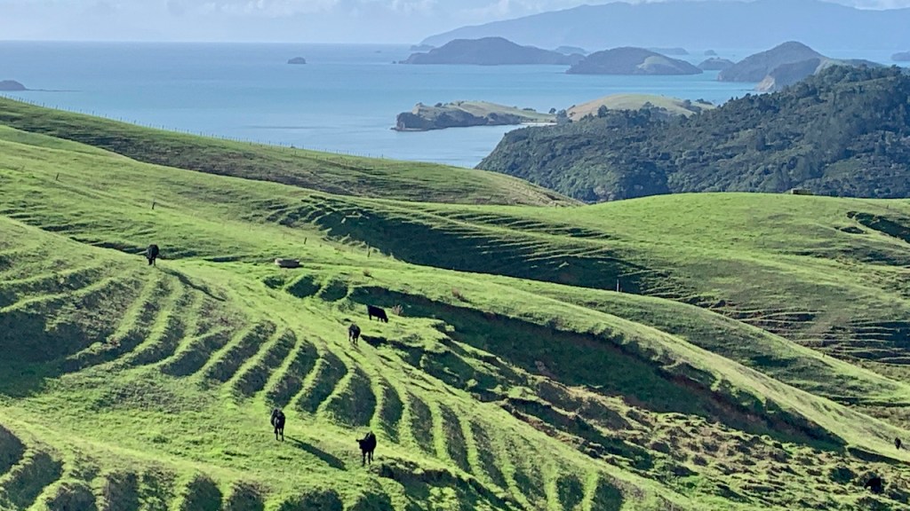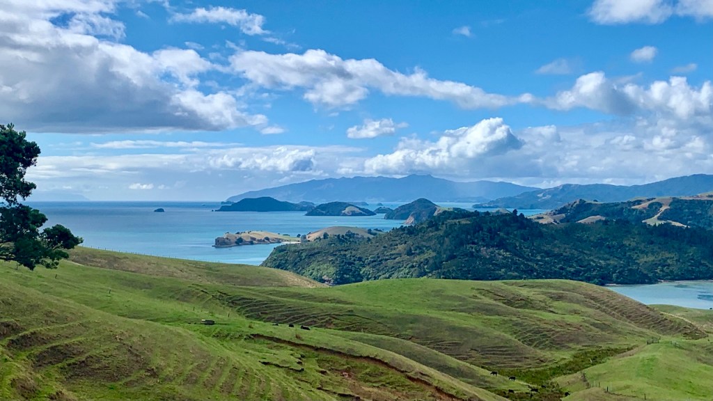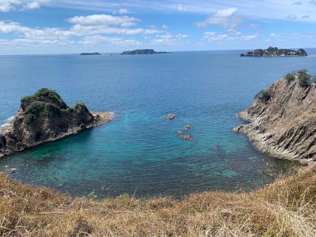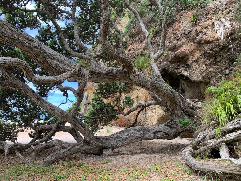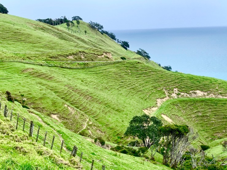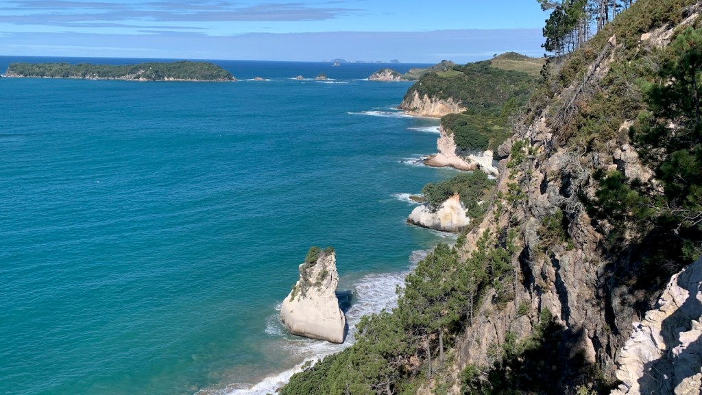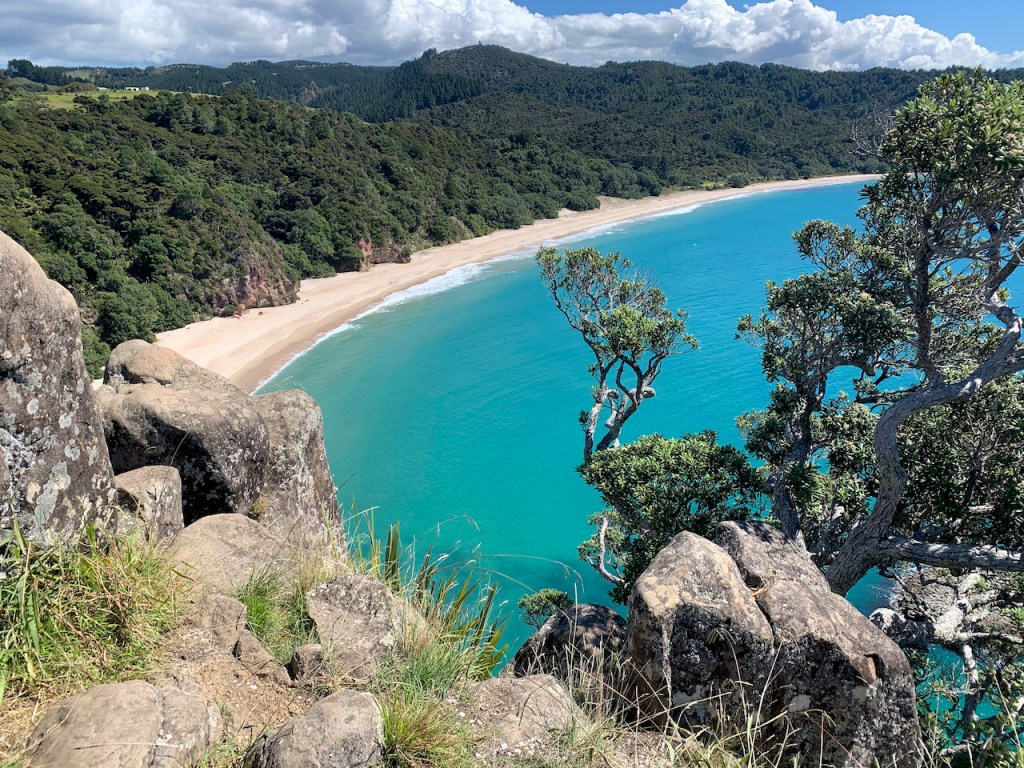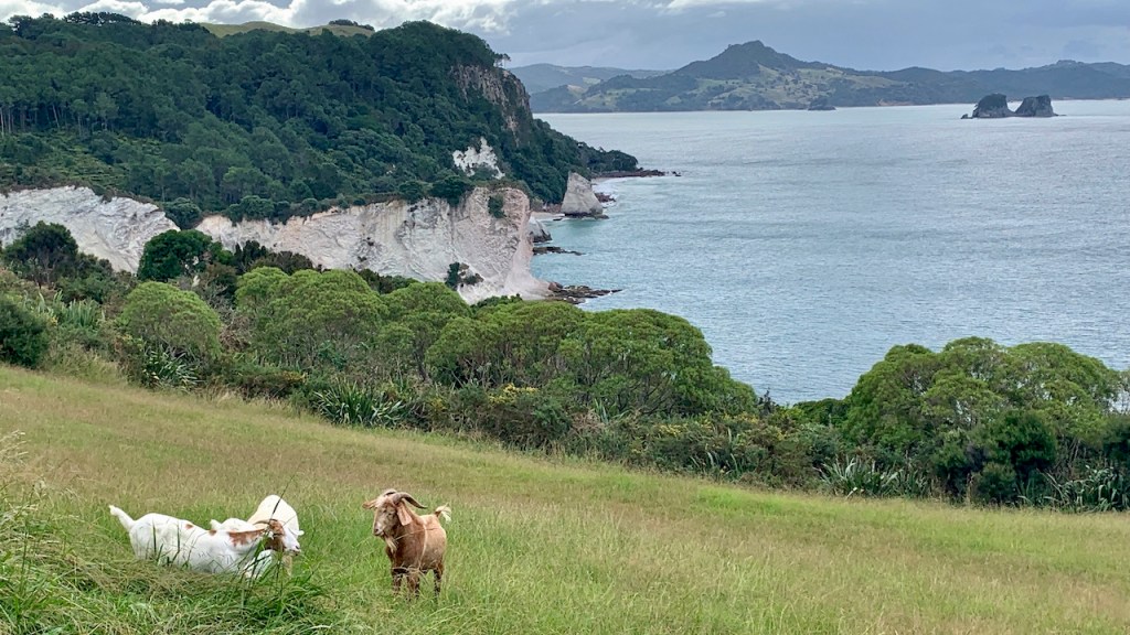 The Coastal Walkway is mostly gentle, with a few steep sections, across a sheep station, through forest and dense bush. The payoff – rocky coastline views all the way to NZ Great Barrier Island.