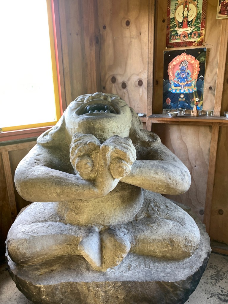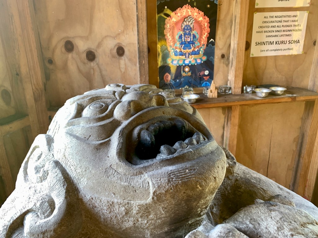 At the Mohamudra Centre for Universal Unity you circumambulate the Stupa to generate good thoughts. Or visit a Buddha who eats negativities. This meditation practice is to light a fire underneath the Dorie Khadro statue and throw seeds into his mouth while imaging your negativities (anger, jealousy, etc.).