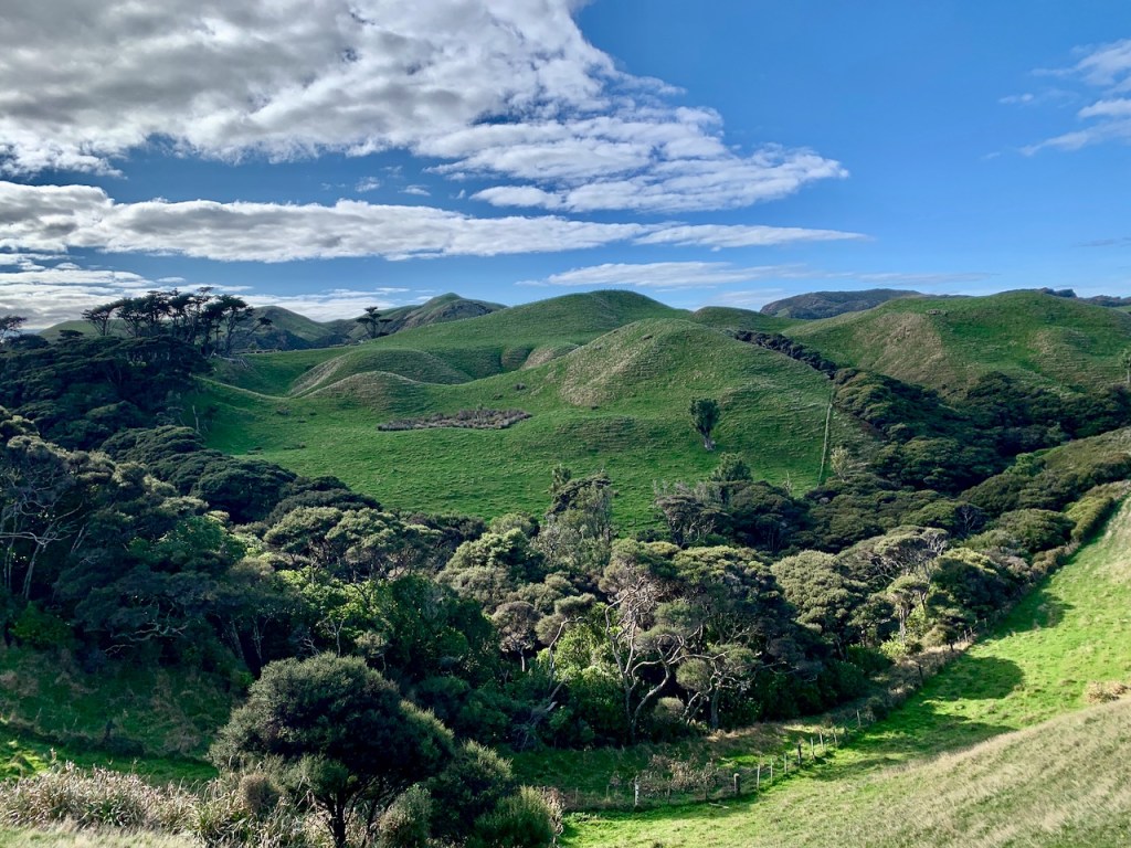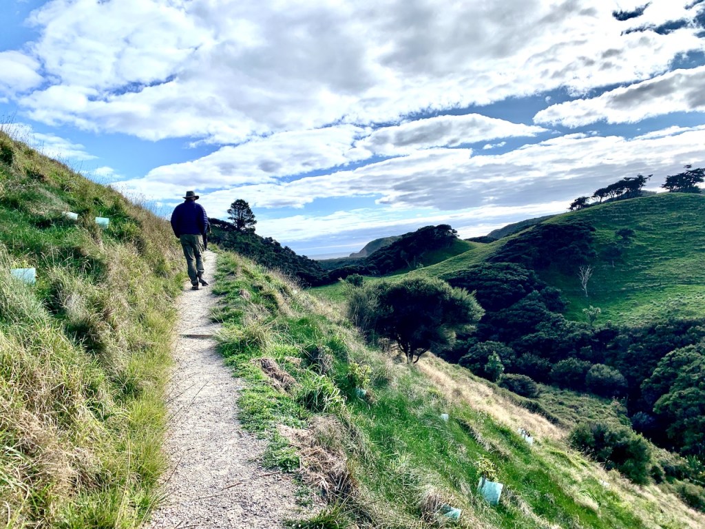A 656 ft. predator-proof fence was installed in 2020 creating a 6 acre sanctuary for seabirds, giant snails and geckos. NZ has a goal of predator-free by 2050 to protect creatures from stoats (weasels), rats, and possum introduced by settlers in 1840.