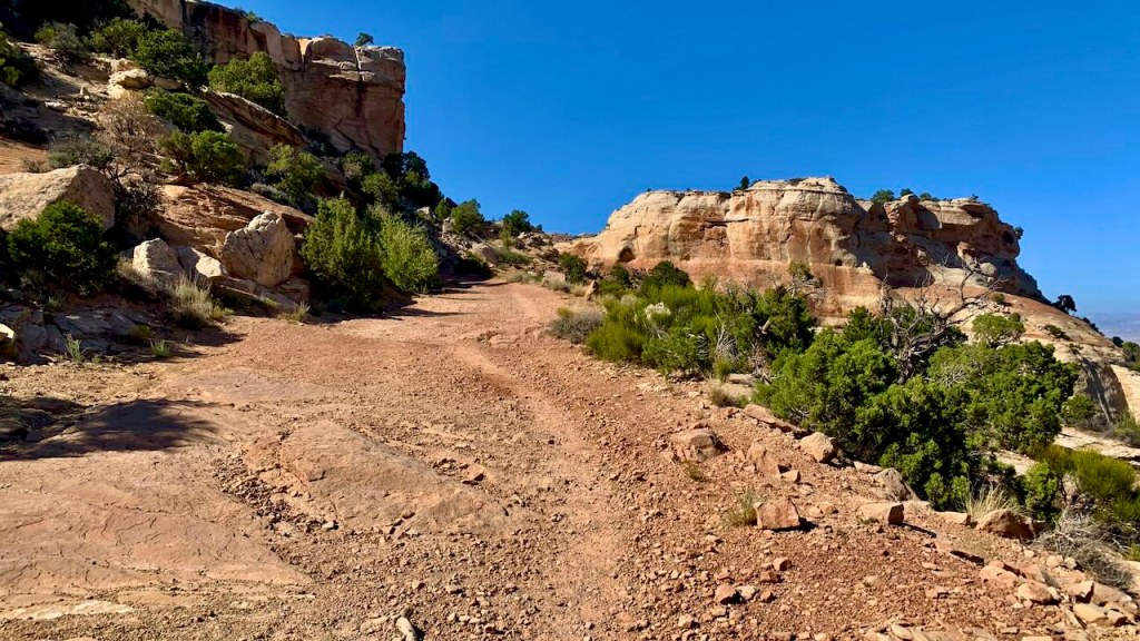An easy 2.3 mile out and back trail along canyon rims seeing the Green River as you peek over the edge. A gorgeous panorama at the end the view resembles a smaller Grand Canyon with straight drops.