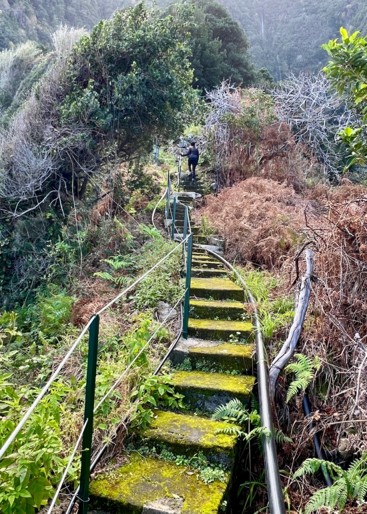 São Vicente sits on the valley floor with a few seaside rustic bars and restaurants, (Madeira wine tasting). The historic town center is a few blocks inland, and that’s it for flat . . . everywhere else around town is quite the uphill hike.