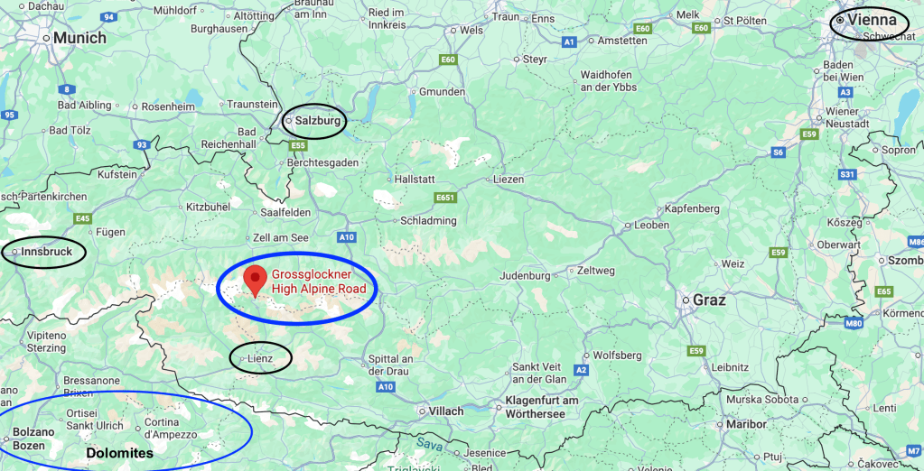 - A loop within Austria: Salzburg → Grossglockner → Innsbruck.
